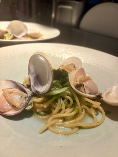 ハマグリは浜名湖の青海苔と合わせパスタでご用意しております😊⁡ぷっくりとした身入りの良いハ...