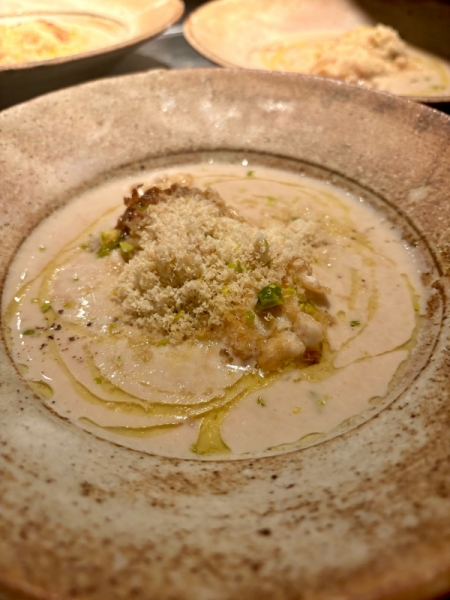 ホッコリとするような甘さのスープにクリーミーな白子のソテー。是非お召し上がりください!