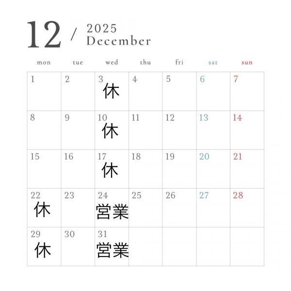 12月の営業日程のお知らせ 2025-12-03 15:23:16 【12月の営業日程のお知らせ】渋谷 奥渋のイタリアン Luna e Gatto(ルナエガット)です🐈🐾12月は少し不規則な営業日程となっております。また、12/31〜1/4の期間中はランチ、ディナーともに営業しておりますので、是非お問い合わせください!渋谷区 神泉町9-12 カサ・デ・チェーロ101渋谷 奥渋のカウンターイタリアン Luna e Gatto