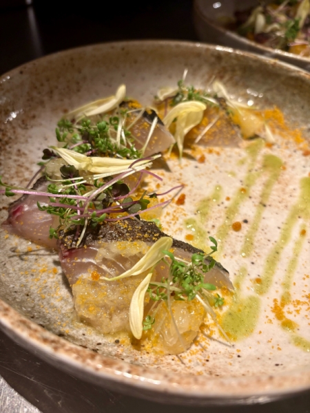 春よこい! 2026-02-11 01:12:42 渋谷 神泉のイタリアン Luna e Gatto(ルナエガット)です🐈🐾先日の特選京鰆の前菜です😊皮目は炙りにし、リコッタチーズとマスタードで和えたスモークした菜の花やグレープフルーツ、おろし玉ねぎとグレープフルーツ果汁のソースなどを合わせて仕上げています!皮目の香ばしさと、ふんわり香るスモーキーな菜の花、グレープフルーツの酸味をお楽しみください😊