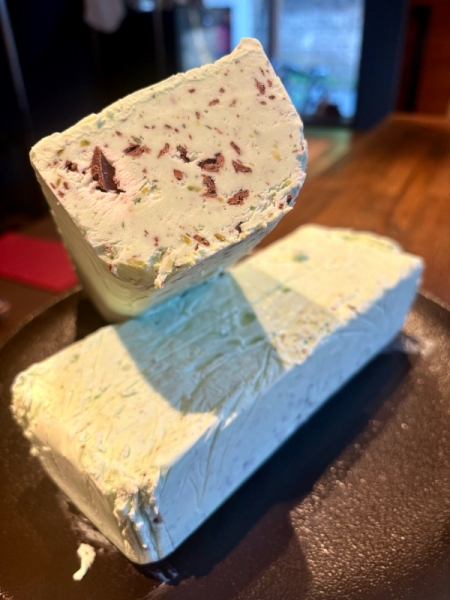 チョコミン党に捧げる爽やかドルチェ 2026-04-21 16:33:24 渋谷 神泉のイタリアン Luna e Gatto(ルナエガット)です🐈🐾とあるお客様との会話から思案していたチョコミント風味のカッサータ完成しました😊暖かい時期にぴったりな爽やかで冷たいドルチェになっております!チョコミン党の方は是非お召し上がりください☺️(通常のカッサータもご用意しております!)