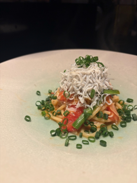 本日のランチの〆パスタは、釜揚げしらすとフレッシュトマトアーリオオーリオをご用意しております...